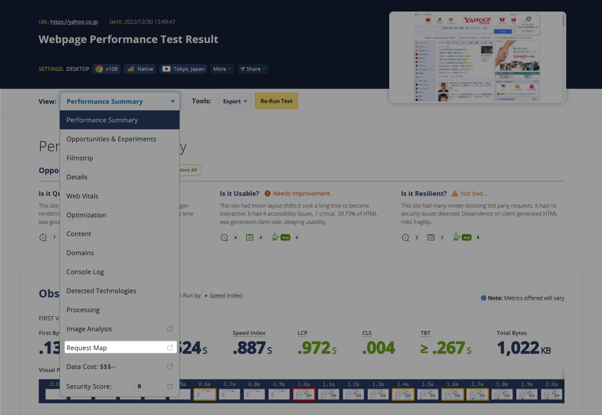 これは、Catchpointが提供しているWebPageTestでテストすると、メニューの「Request Map」から生成できます。